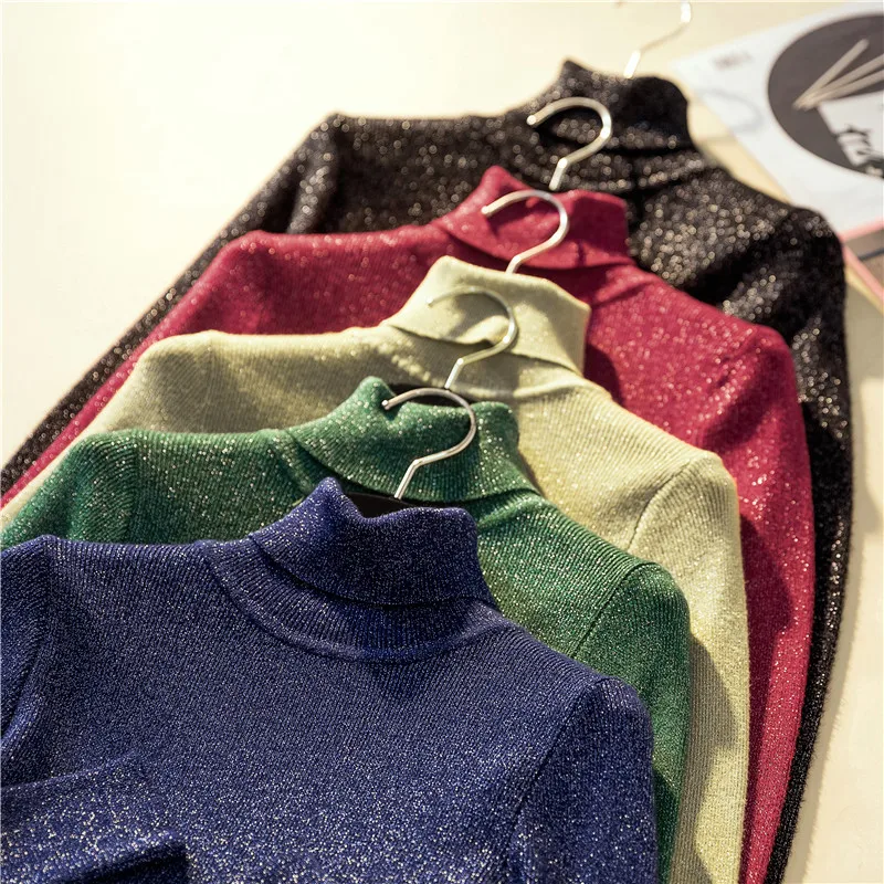 Sweater women tops turtleneck autumn 2019 pullover zipper long sleeve big elasticity laciness wool knitting shirts casual style