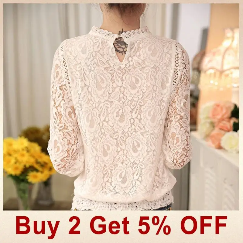 .image for Jocoo Jolee Sexy Women Lace Blouse Shirts Long Sleeve Chiffon Lace Crochet Tops Ladies White Blusas